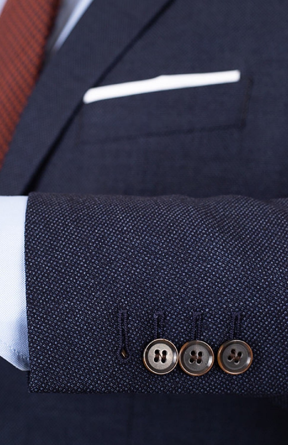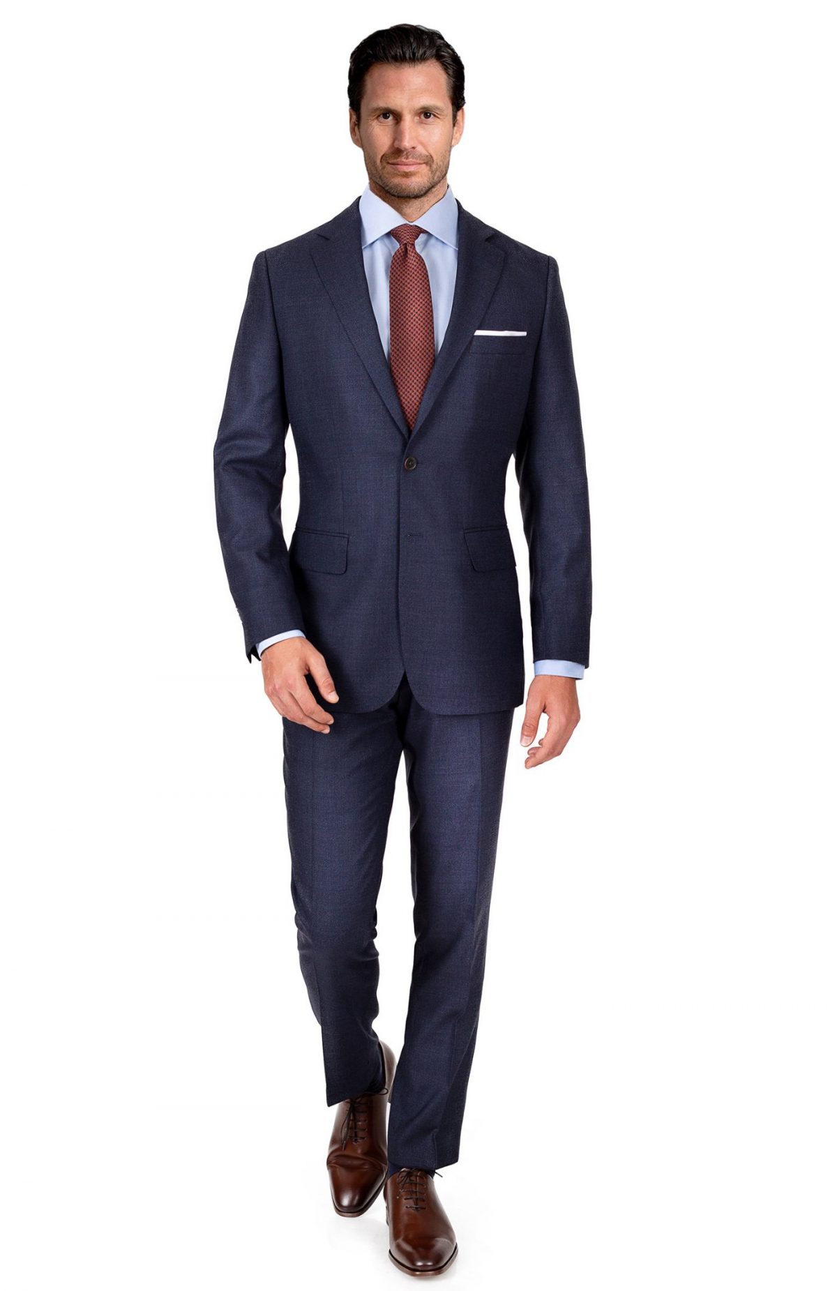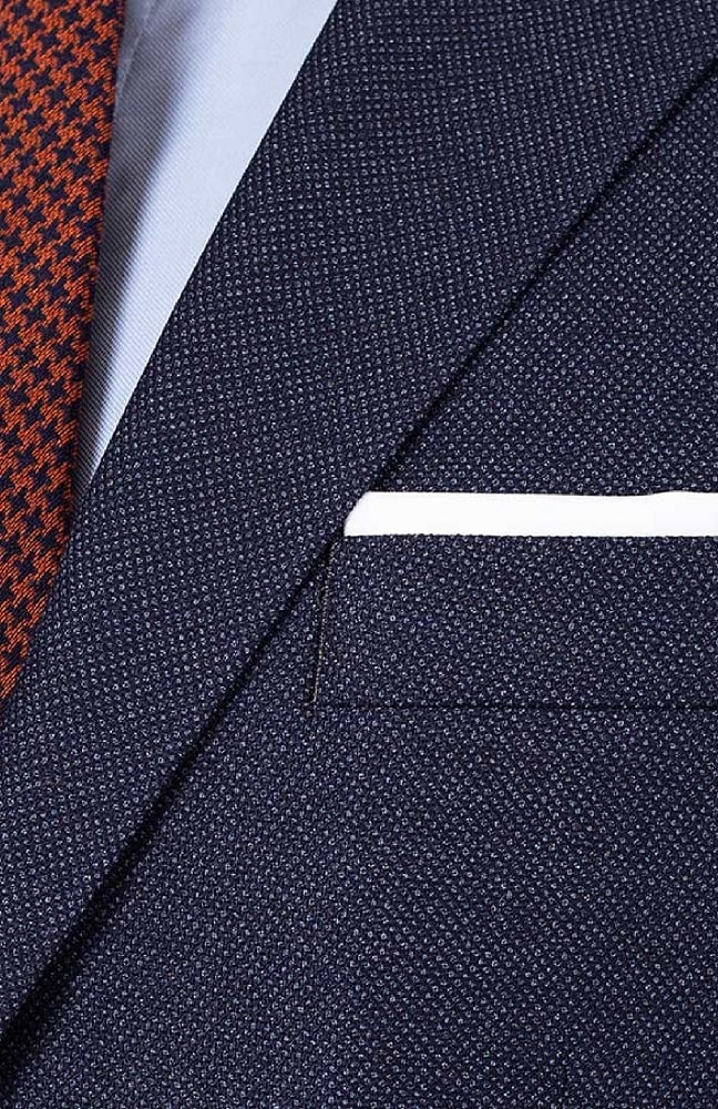 An urban man who is always on the move obviously needs a suit that remains impeccable throughout the day. This dark royal blue suit with a caviar pattern is the perfect choice for your daytime and evening events. The colour is reminiscent of the famous denim trousers, but thanks to its cut and fabric patterns, you will quickly forget the casual side of jeans and feel elegant and confident. The colour of the suit will allow you to easily match it with your shirts and ties, and the discreet pattern will give you the little touch of originality you were looking for.